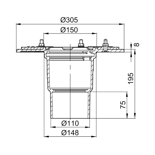ACO Niðurfall Passavant Spinúr steypujárni, málað
