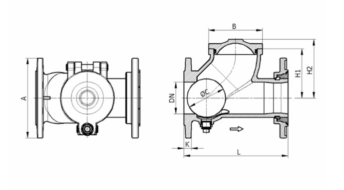 Einstefnuloki Hawle með Kúlu DN200 PN10 fyrir Skolp
