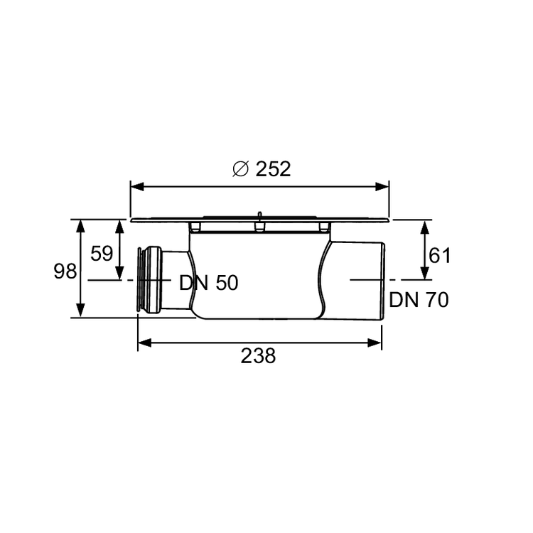 Gólflás DN70 Vinkill Body TC