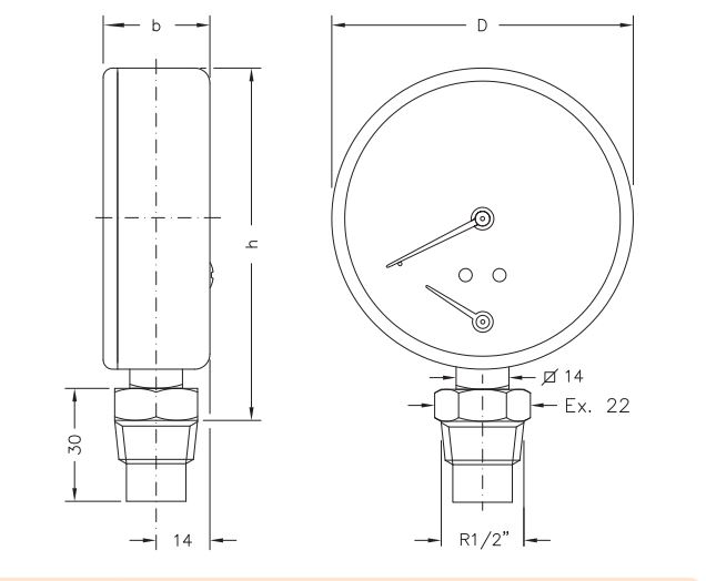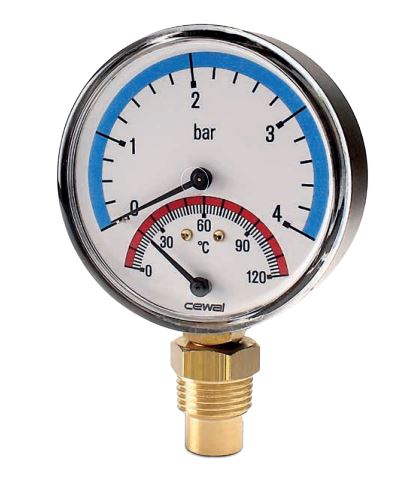 Hita- og þrýstingsmælir 0-120°C - 6 bör