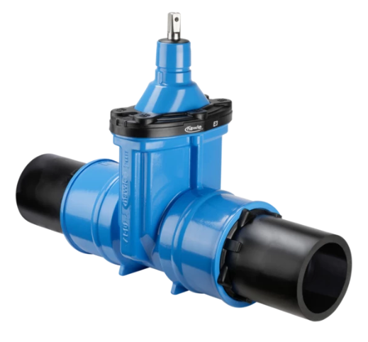 - Resilient seated gate valve with PE fusion tails in combination with PE pipes according to EN 12201, DIN 8074 - PN10 / SDR17