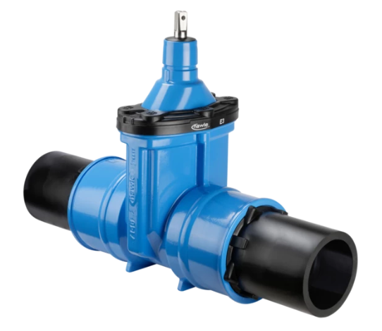 - Resilient seated gate valve with PE fusion tails in combination with PE pipes according to EN 12201, DIN 8074 - PN16 / SDR11