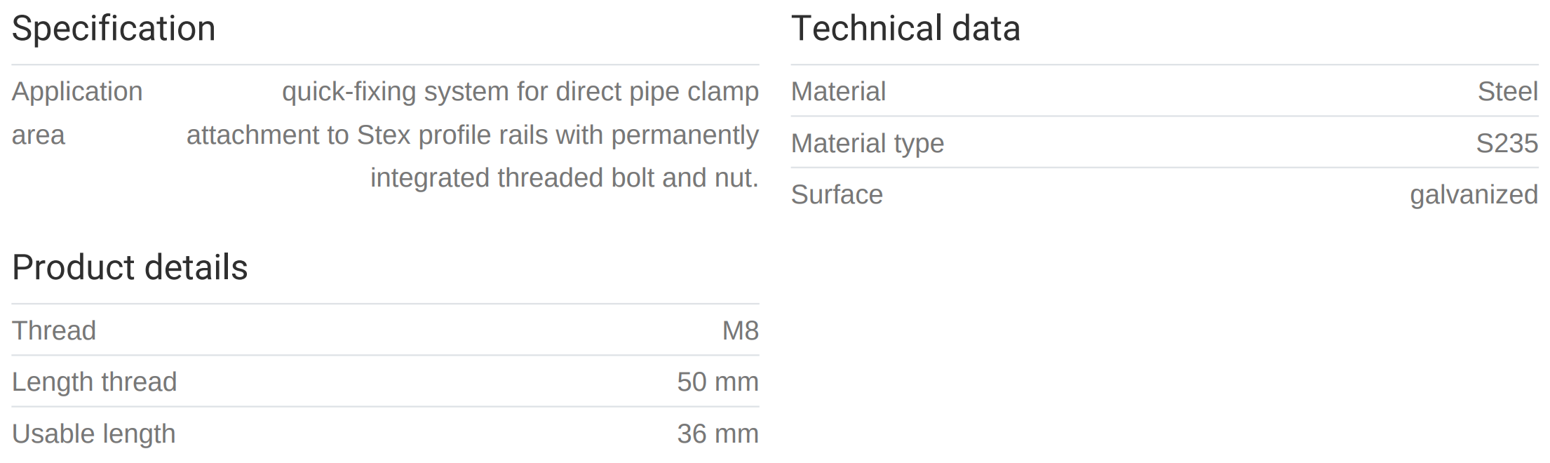 MEFA Brautarbolti STEX35 M8 50mm
