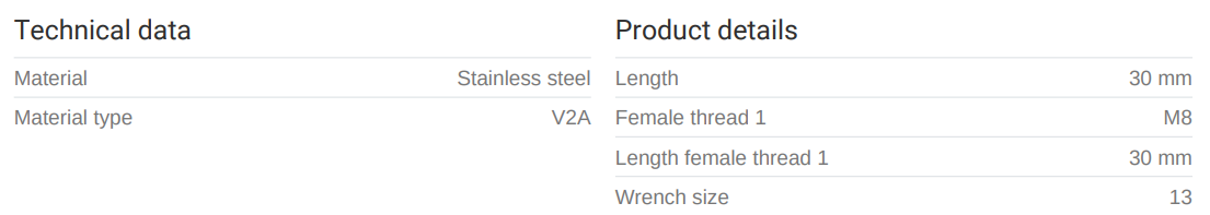 MEFA Langrær Sexkant ryðfríar M8 30mm