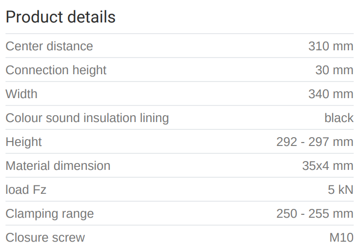 Rörafesting frá MEFA úr galvaniseruðu stáli með einangrunGerð: Maxima PSM 35x4 250 - 255 mm M16 TPEStærð: 250 - 255 mmSkrúfgangur: M16Einangrun úr gúmmí
