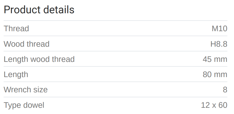 Skrúfbolti frá MEFASkrúfgangur (M): M10Skrúfgangur (H): 8,8Lengd (L3): 45 mmLengd (L): 80 mmLykilstærð (SW): 8