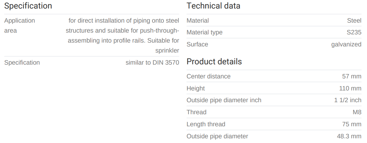 Gerð: U-bolt 48,3 mm M8 total height 110 mm