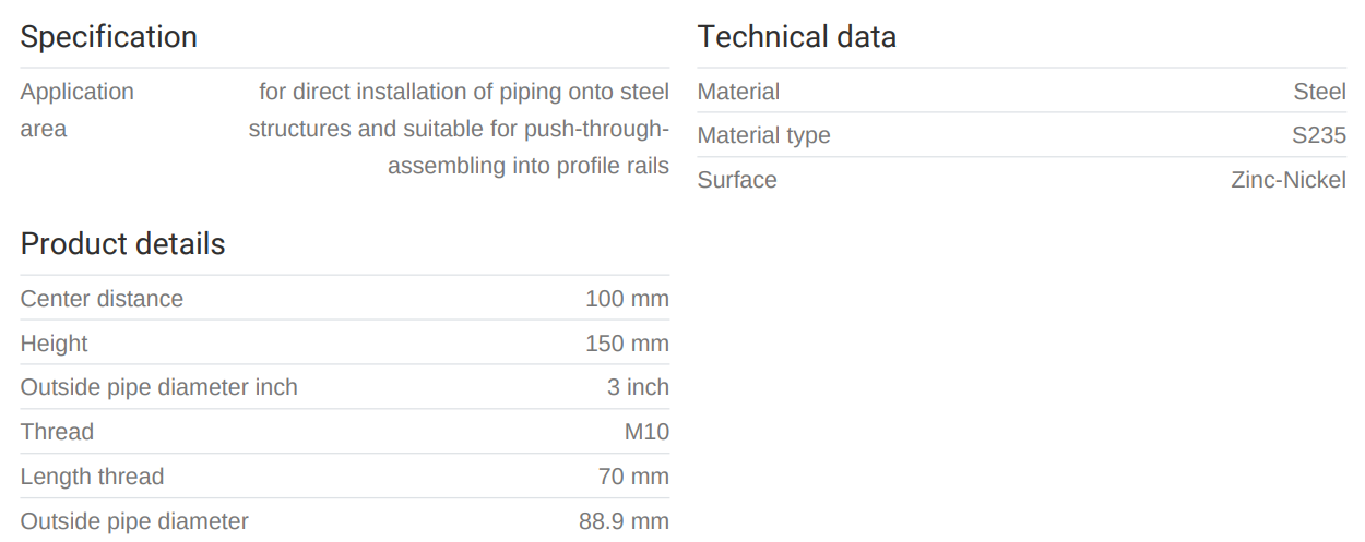 Zinc-Nikkel húðað U-járn frá MEFA fyrir sprinklerGerð: U-bolt ZnNi 88,9 mm M10 150 mmStærð: 3"Þvermál Ø: 88,9 mmHæð: 150 mmSkrúfgangur (M): M10