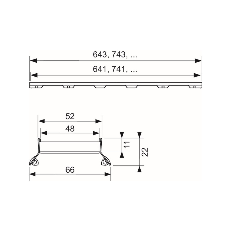 Tileable channel for TECEdrainline shower channel, for fitting into the channel body, made of stainless steel. Maximum test load 300 kg based on load class K3. Tiles can be attached by the customer using elastic adhesive, e.g. silicon or epoxy resin adhesive.