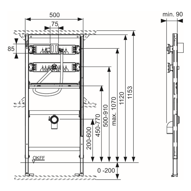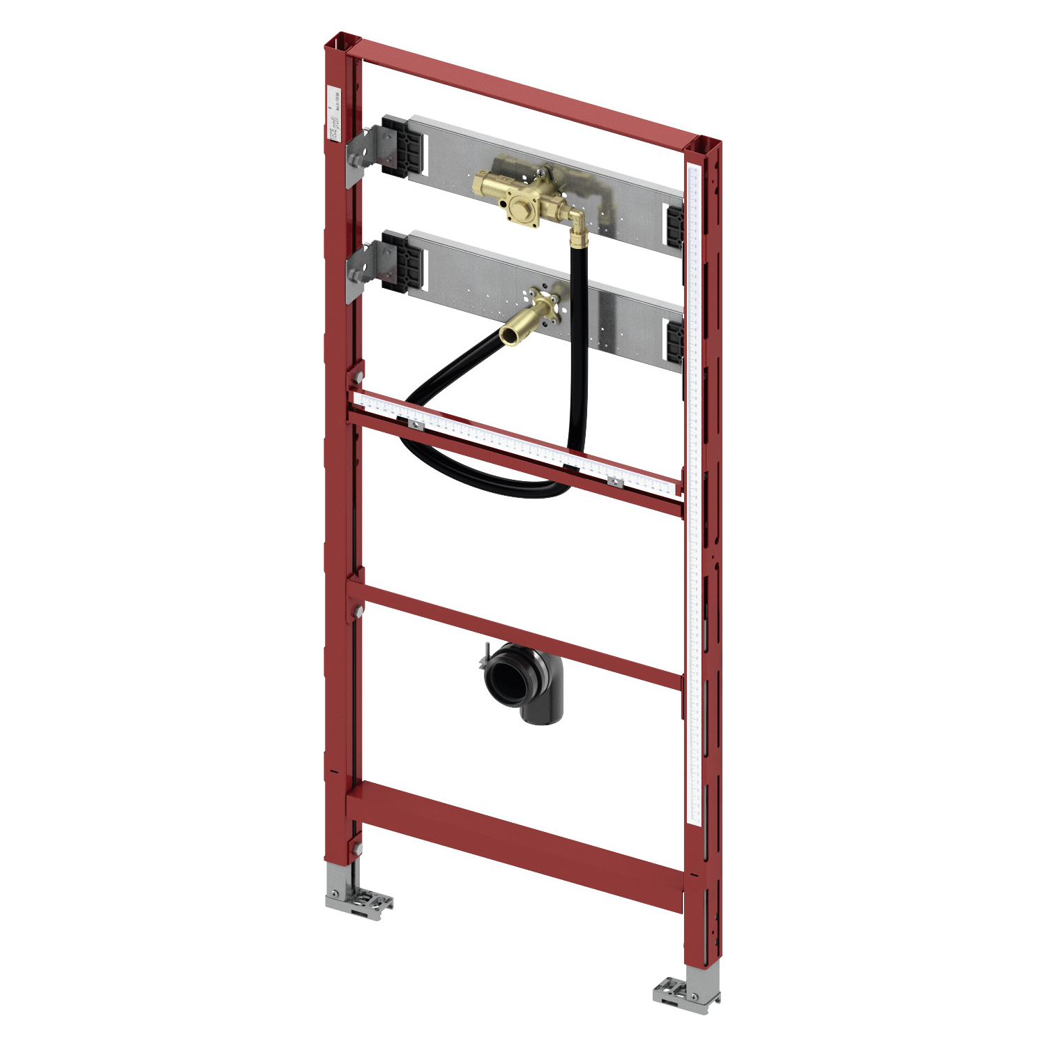 Urinal module to hold manual and electronic actuation systems. For fitting to TECEprofil section tubes or for installation in metal or wooden stud walls and as a pre-wall or corner module.