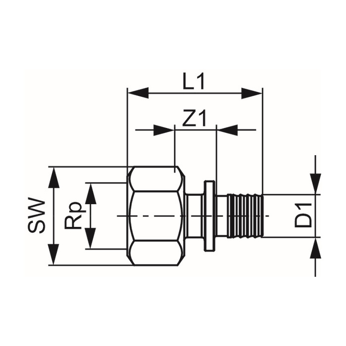 TECE Múffutengi Stærð: 25mm x 3/4"Female connector made of standard brass for O-ring free pressure sleeve connection of TECEflex composite or PE-X pipes to threaded fittings.