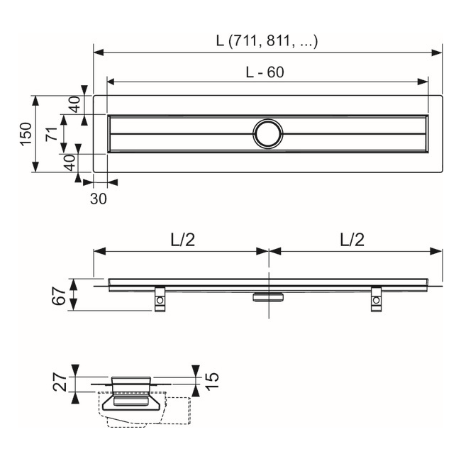 - Channel body with flange made of polished stainless steel, material 1.4301 (304)