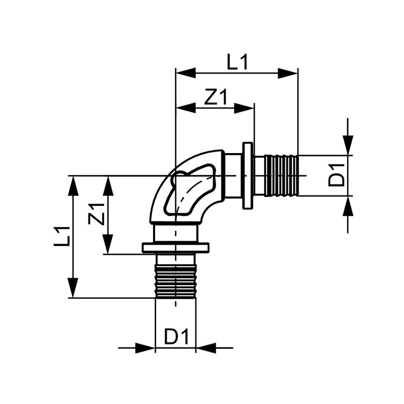 90° coupling made of silicon bronze, elbow with pressure-loss optimised design and favourable flow characteristics. Low zeta value due to low-loss change of direction via arcuate bends and the very nearly identical inner cross-section of the pipe and fitting.