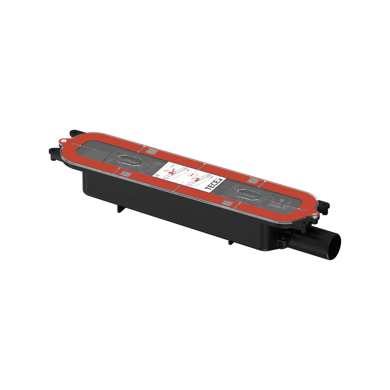 Drain for TECEdrainprofile shower profile, for installing in screed, for connection to the side of a DN 40 drain pipe. With factory fitted and clickable Seal System sealing sleeve, to create a DIN 18534 compliant connection of the composite seal.