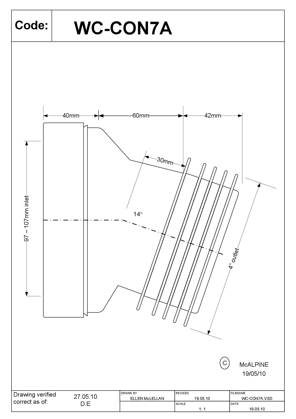 WC Hólkur - 14° BeygjaLengd: 142mmInntak: 97-107mmÚttak: 4"/110mm